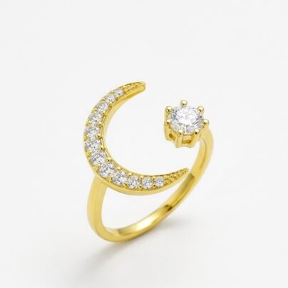 925 Silver Big Moon and Star Ring Gold Plated