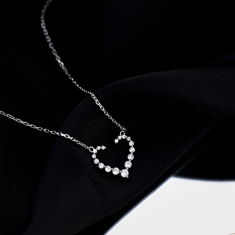 Pair the silver heart pendant with a sleek black dress and silver heels for an elegant, evening look that highlights the pendant’s sparkling elegance.
