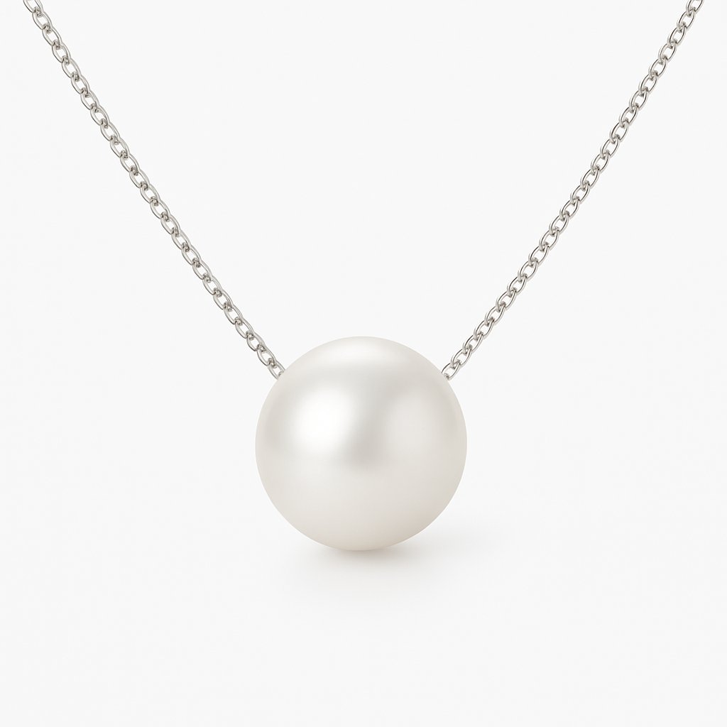 This elegant silver necklace showcases radiant pearls, blending classic charm with modern style, ideal for enhancing both casual and formal looks.