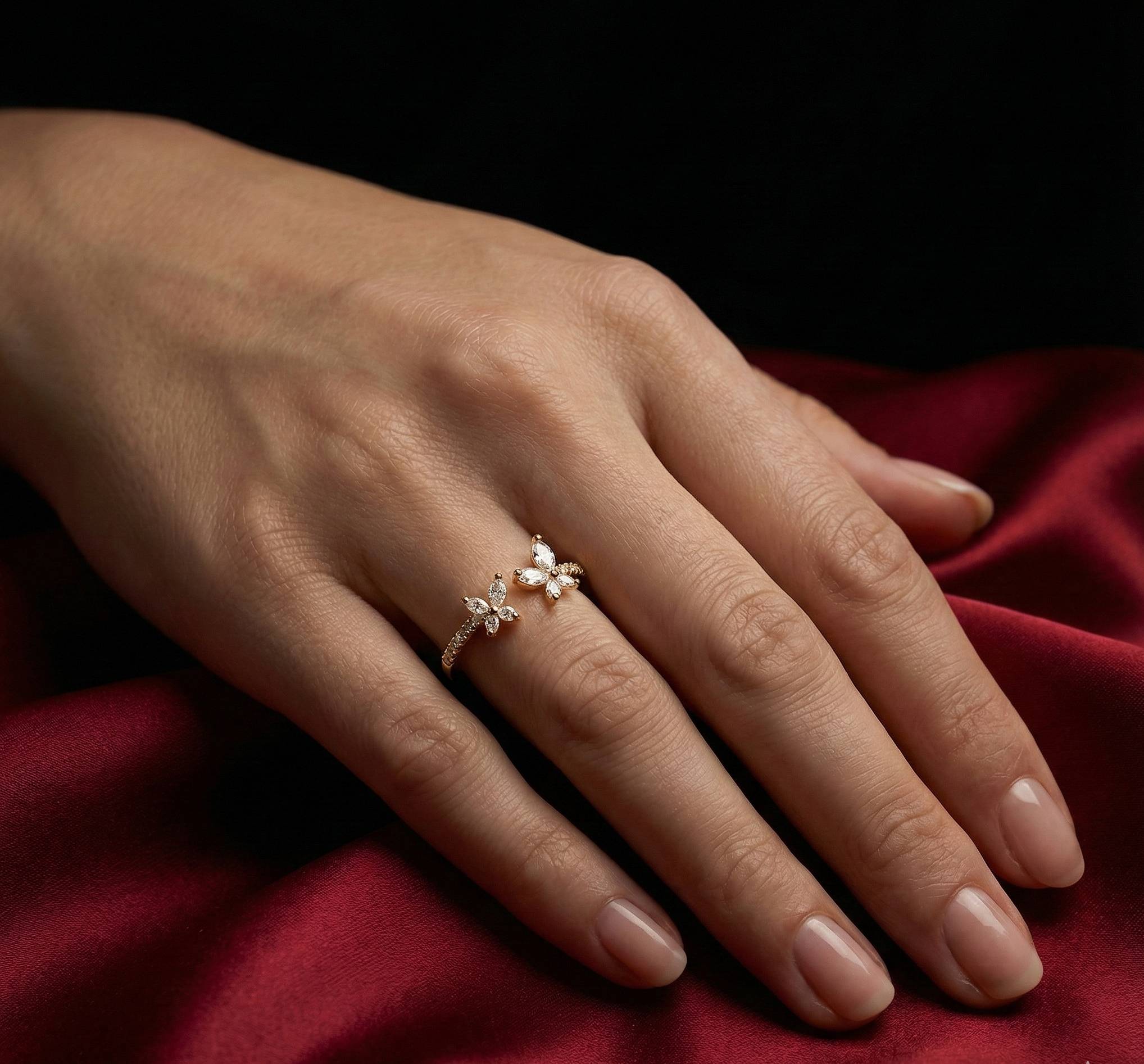 Adjustable Brass Ring With Small Floral Designs