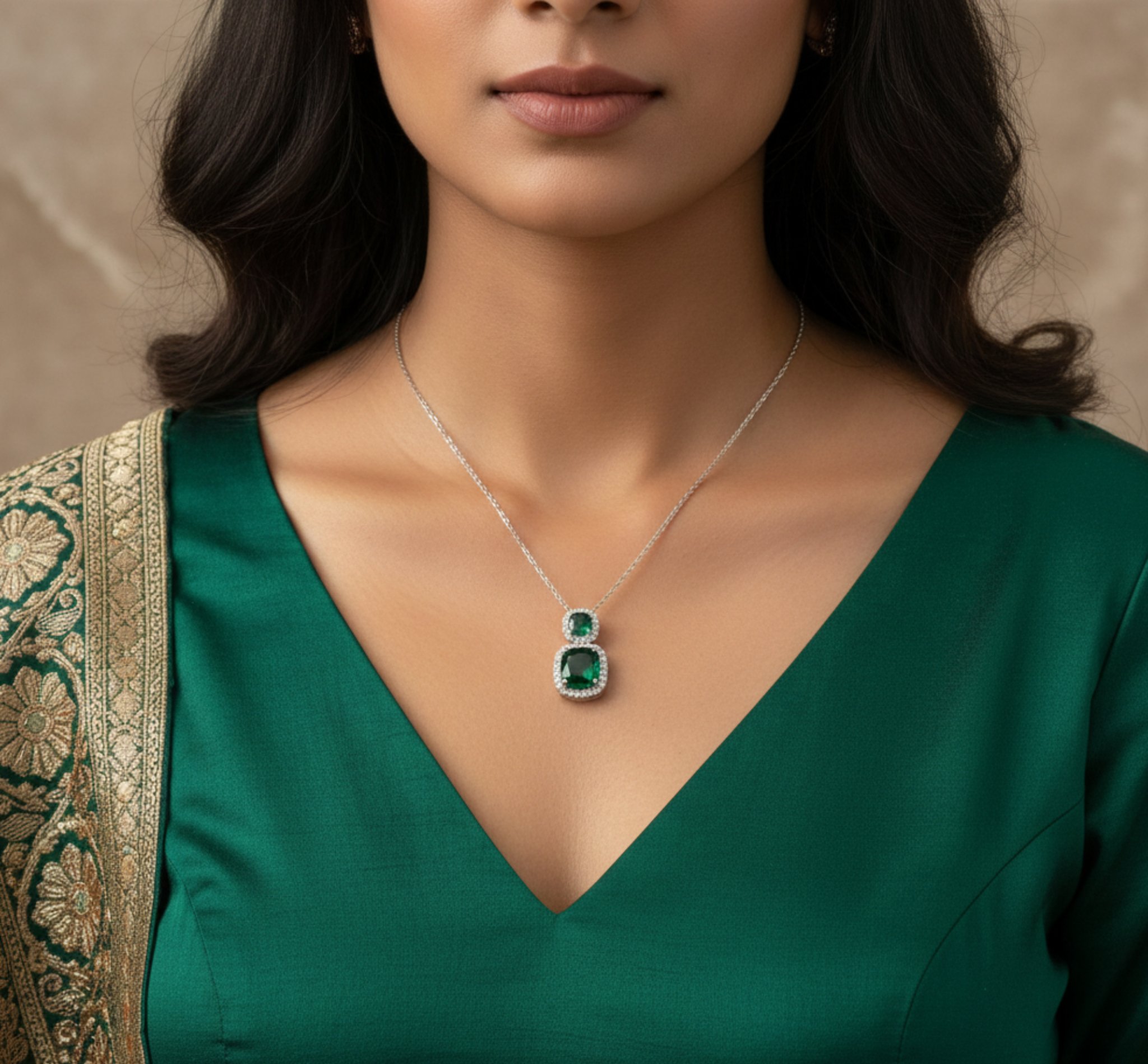 - Occasion: Whether you’re attending a formal event or enjoying a casual outing, the Brass Green Diamond Tiered Pendant can seamlessly transition between different looks.