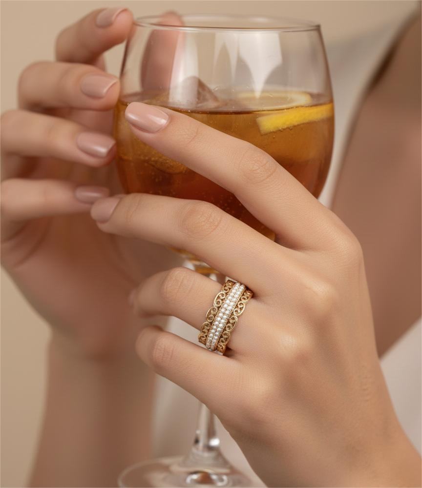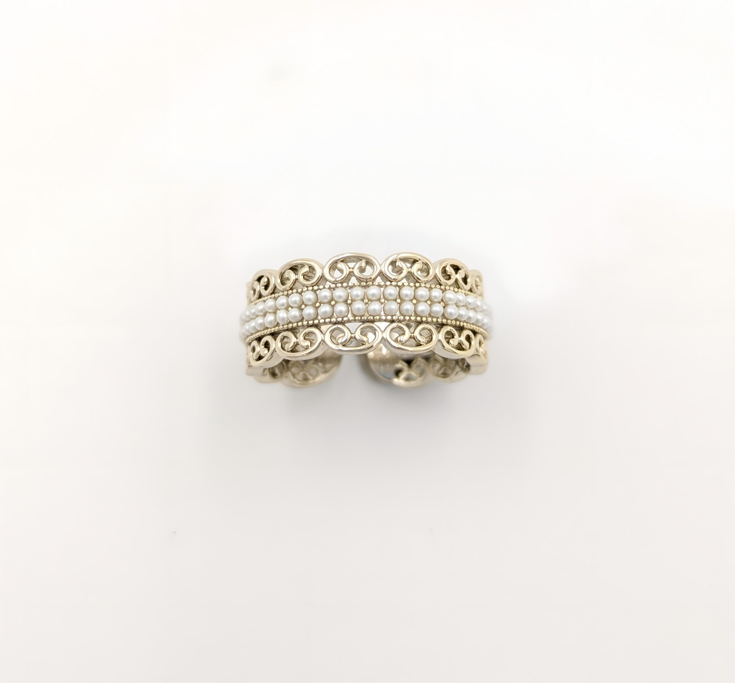 Brass Ring Designed With Small Pearl Bedds