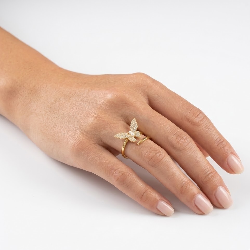 The Butterfly Pearl Clasp Ring pairs beautifully with both casual and formal outfits. For a chic, everyday look, wear it with a flowy blouse and jeans. For a more elegant appearance, pair it with a cocktail dress or a formal gown. The adjustable design also makes it easy to stack with other rings for a trendy, layered look.
