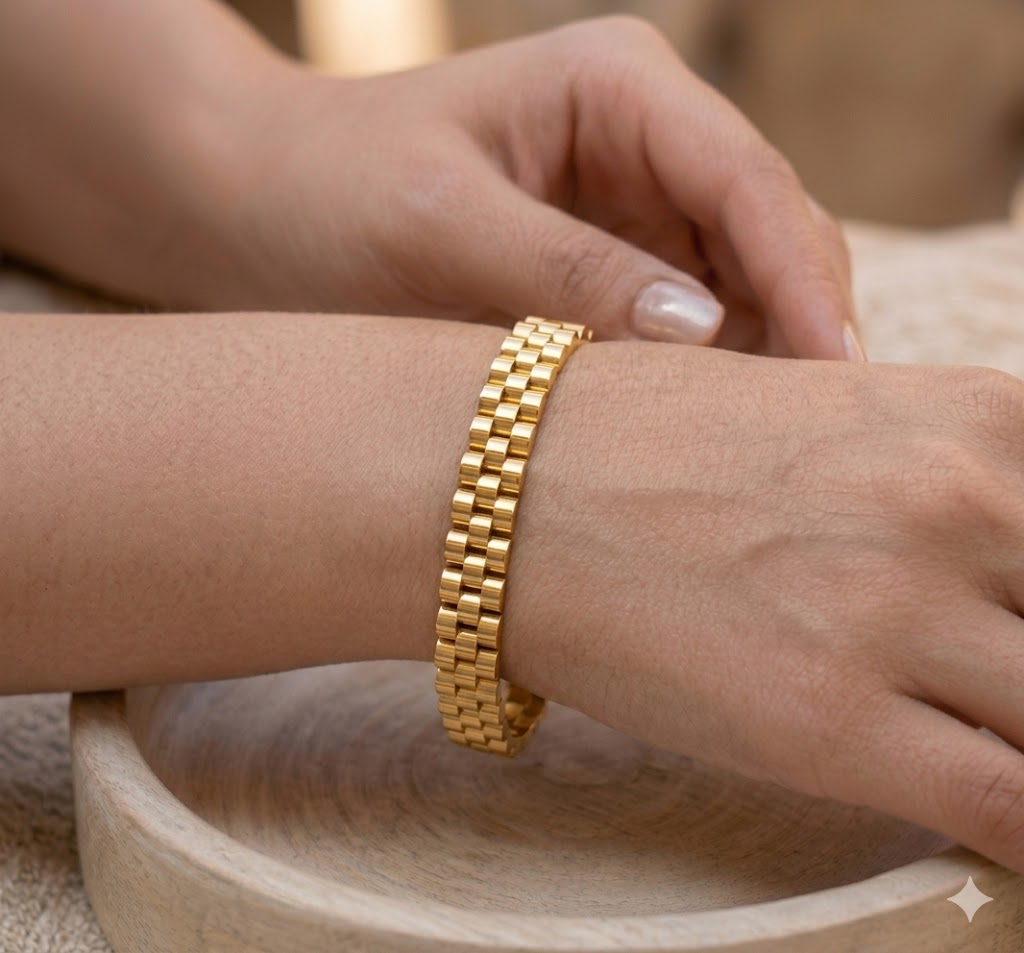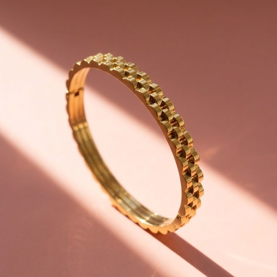 Enhance your everyday style with this Classic Chain Kada Bracelet for Women. Featuring a timeless chain-inspired design, this elegant gold kada bracelet adds a refined and modern touch to any outfit. Its sleek finish and versatile look make it perfect for daily wear, office styling, and special occasions.