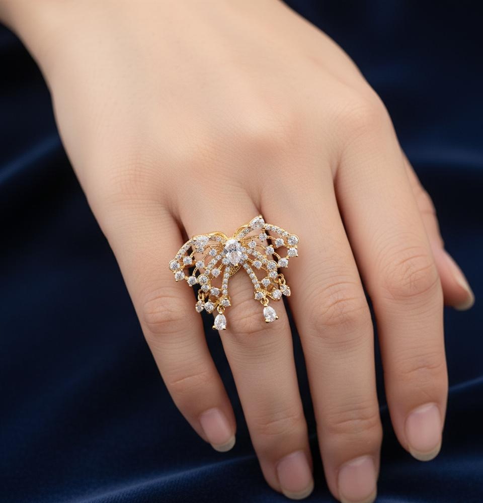 Experience the playful elegance of the premium Whimsical Zircon Butterfly Ring online in India from Risha Jewels.