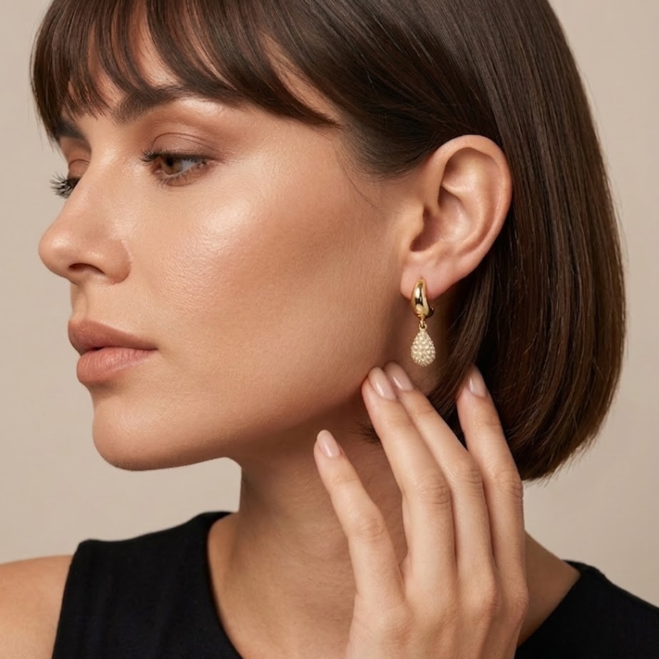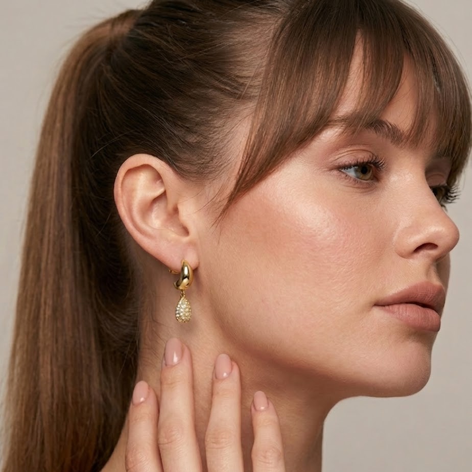 Style these diamond teardrop hoop earrings with party dresses, festive outfits, or elegant evening wear.