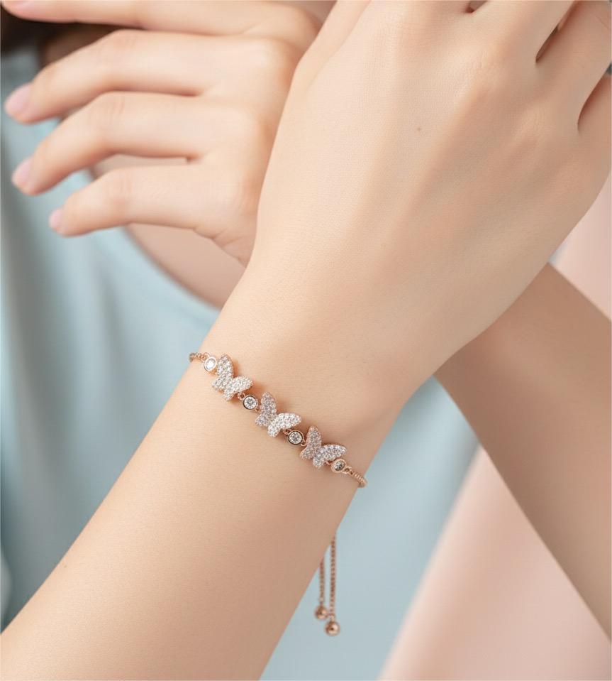 - Elegant Evenings: Pair the Rose Gold Butterfly Brass Flutter Bracelet with an elegant dress for a graceful, feminine look.