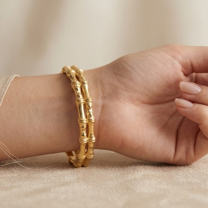 Add a unique touch to your jewellery collection with this Golden Bamboo Kada Bracelet for Women. Inspired by the elegant bamboo design, this stylish gold kada bracelet offers a modern yet timeless look. Its sleek finish and minimal detailing make it a perfect bracelet for everyday wear, office style, and special occasions.