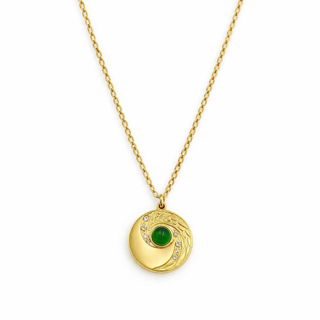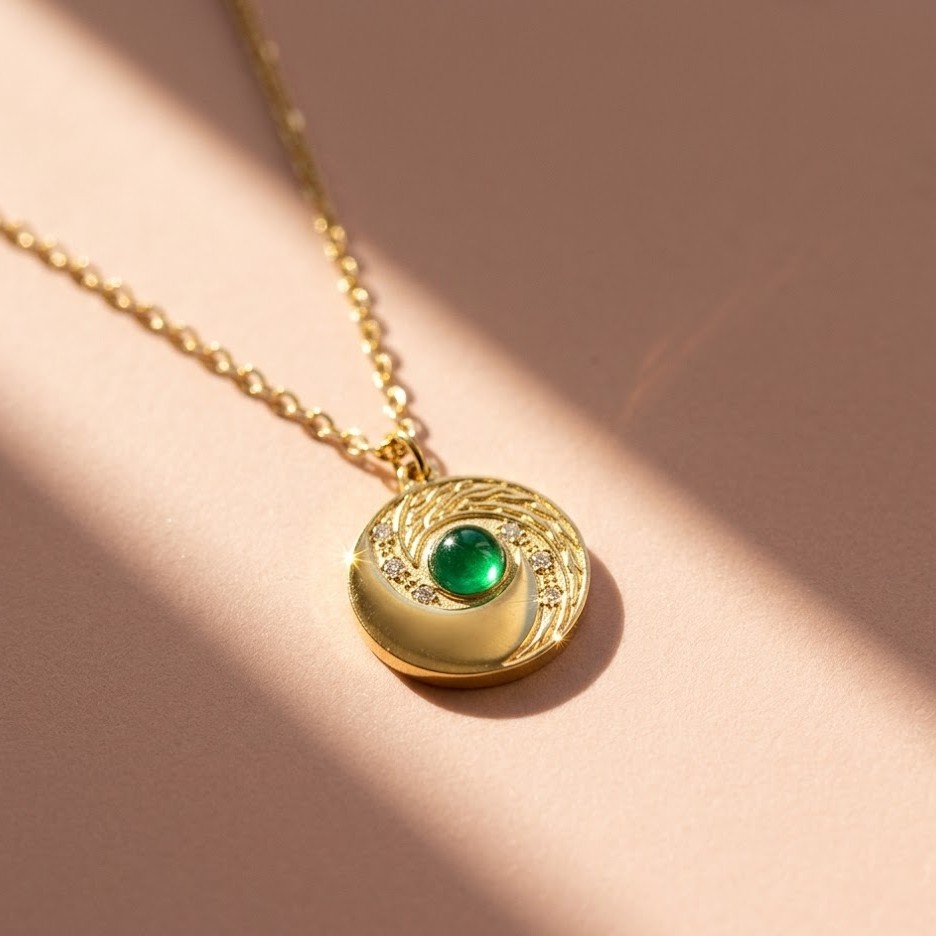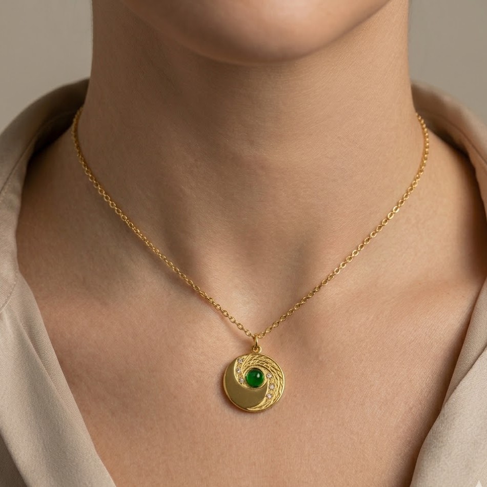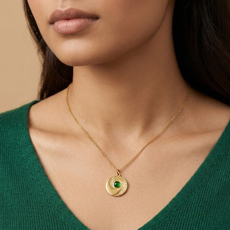 Elegant and timeless, this Golden Emerald Pendant Chain for Women features a beautiful emerald-style stone set in a sleek gold finish. The minimal pendant design adds a refined touch, making this gold pendant necklace perfect for everyday wear as well as special occasions.