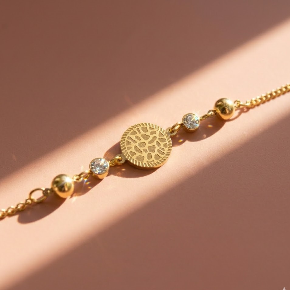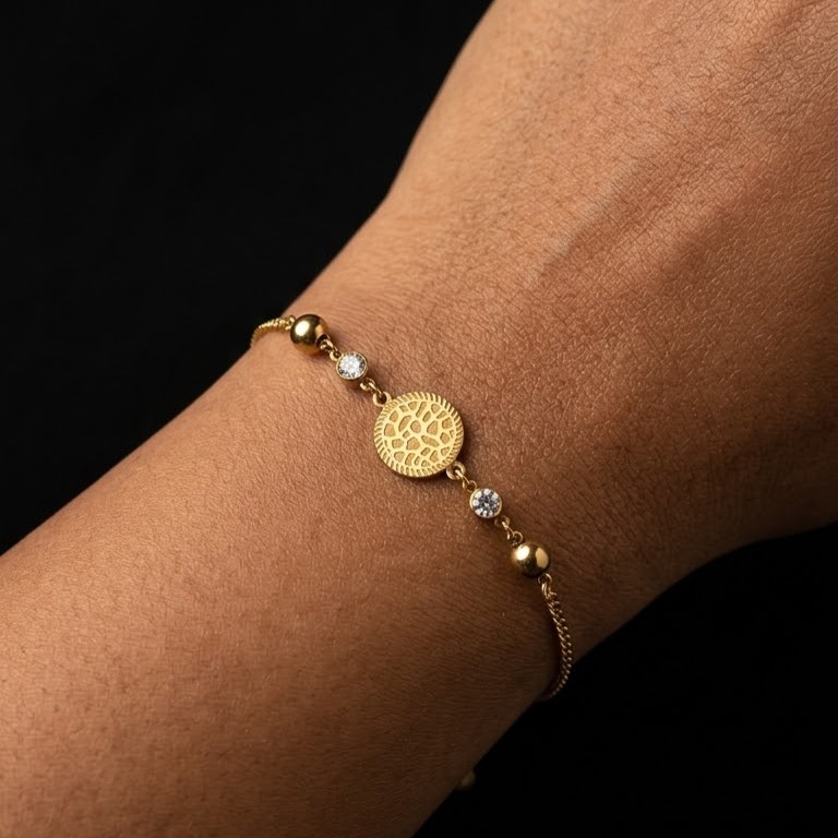 Inspired by antique jewellery styles, this Golden Vintage Coin Bracelet for Women features a delicate coin charm with a polished gold finish. This vintage coin gold bracelet for women with minimal chain design adds a timeless charm to everyday and festive outfits. Crafted in demi-fine jewellery quality, this coin charm bracelet for women is anti-tarnish and waterproof.