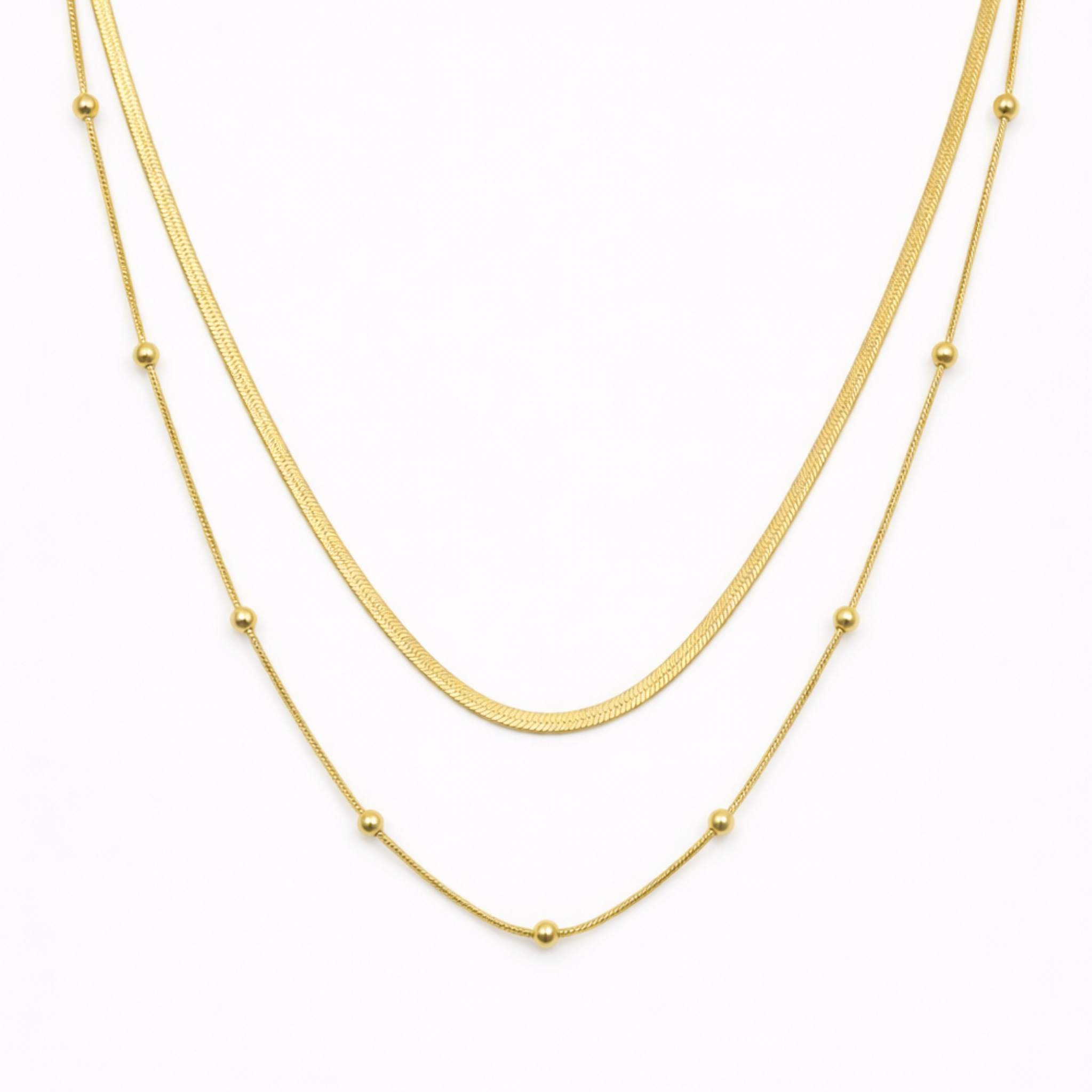 Elegant and versatile, this Layered Gold Chain Necklace for Women features delicate layered chains with a smooth gold finish. The stylish design makes this dainty layered gold chain necklace for women perfect for everyday wear, office styling, and special occasions. Crafted to be anti-tarnish and waterproof, this minimal layered gold necklace for women offers both durability and timeless style.