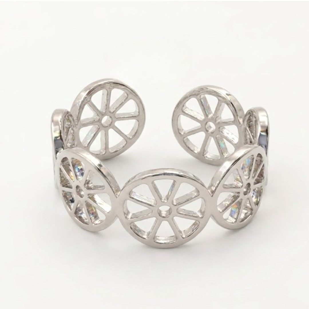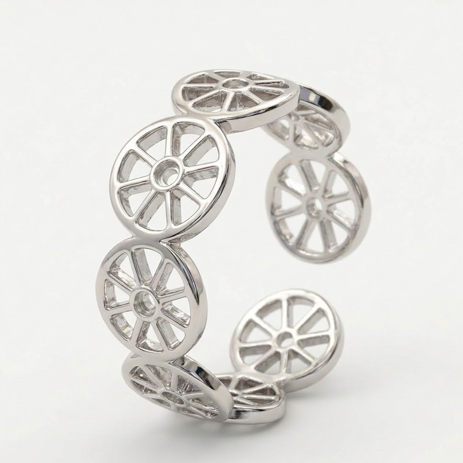 The Tangy Citron Ring from Risha Jewels is a stunning piece that stands out with its bold, wheel-inspired design. Crafted with care from premium brass, this ring offers both durability and a unique aesthetic that effortlessly complements modern fashion trends. If you’re looking for a piece of jewelry that will draw attention while maintaining a touch of elegance, the Tangy Citron Ring is an excellent choice. Its sleek, edgy design makes it perfect for those who want to make a statement with their accessories.