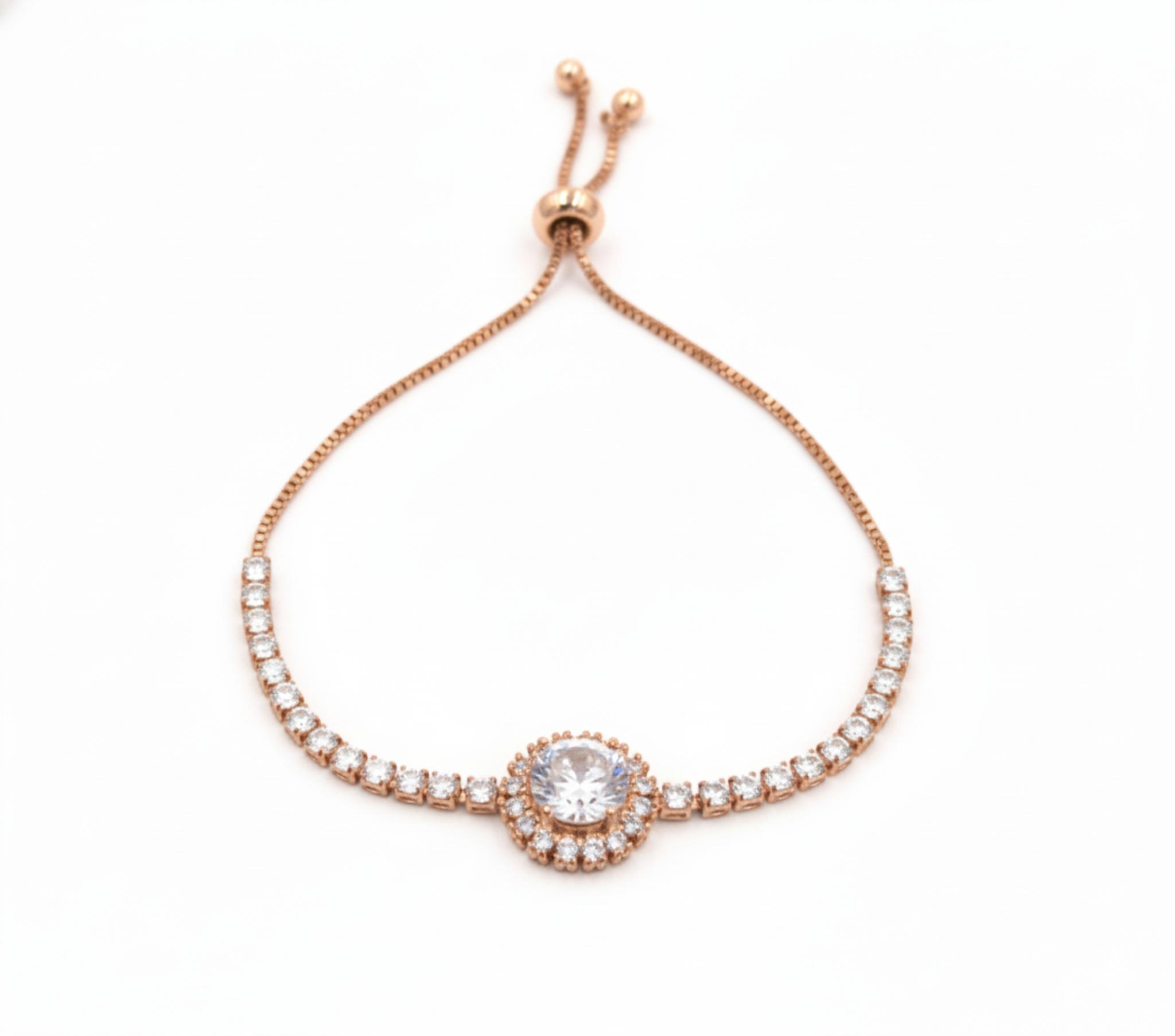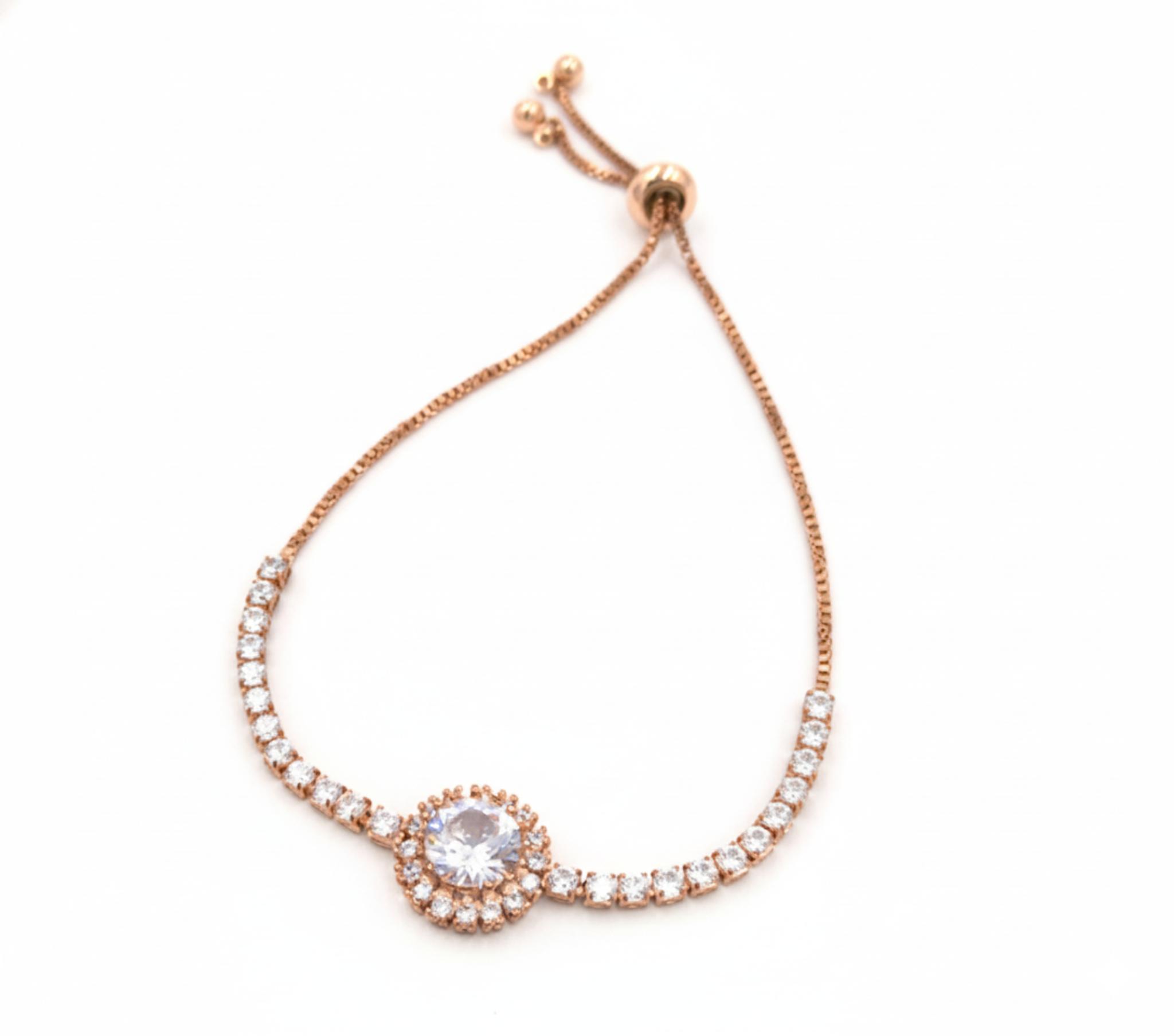 The Rose Gold Brass stone Bracelet offers timeless style with its classic rose gold finish. Its minimalistic design allows it to be paired with any outfit, while still making a subtle statement.