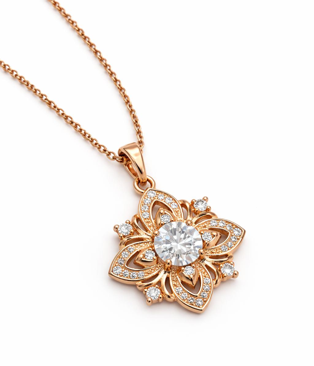 – Affordable Luxury: The premium Rose Gold Floral Sparkle Pendant combines luxurious design with an affordable price, ensuring that high-quality jewelry is accessible to everyone.
