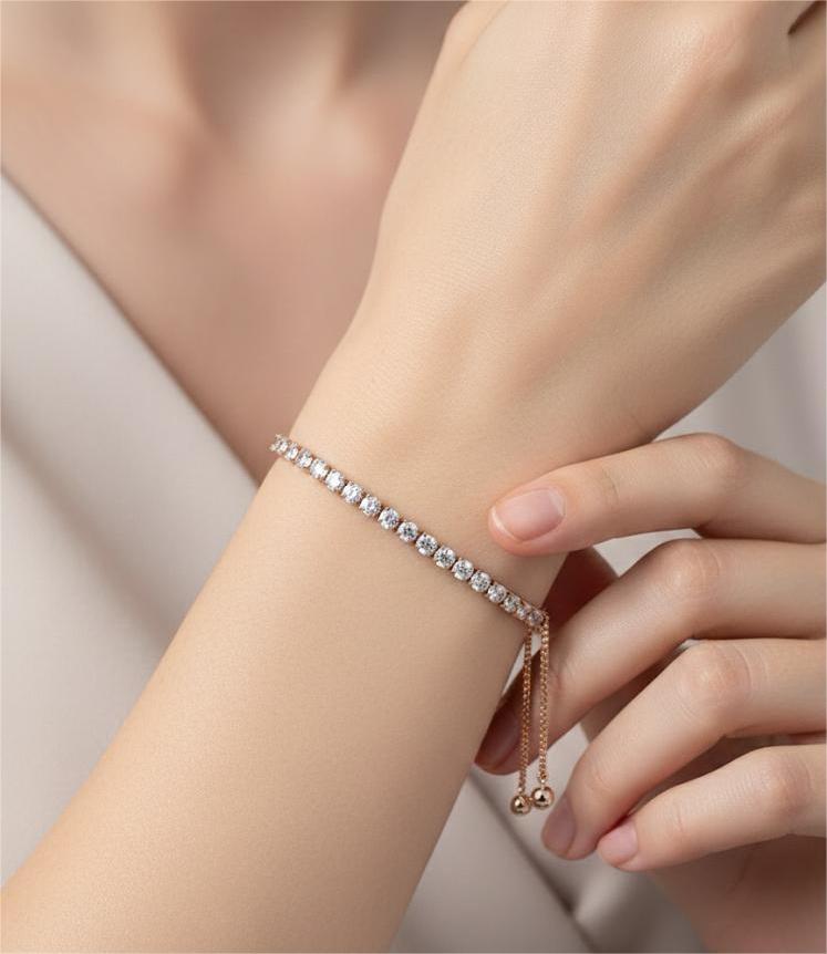 - Formal Elegance: Pair the Rose Gold Zircon Small Circular Brass Bracelet with a cocktail dress or formal gown for a stunning, sparkling look.