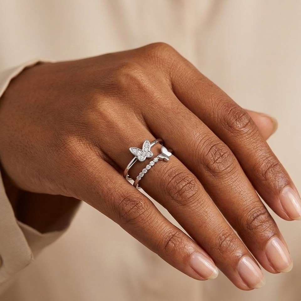 Silver Dual Butterfly Cascade Ring