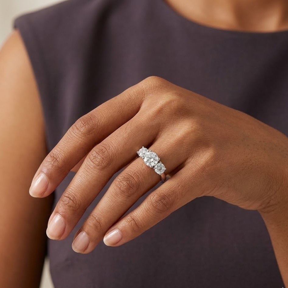 Triplet Sparkle Zircon Silver Ring