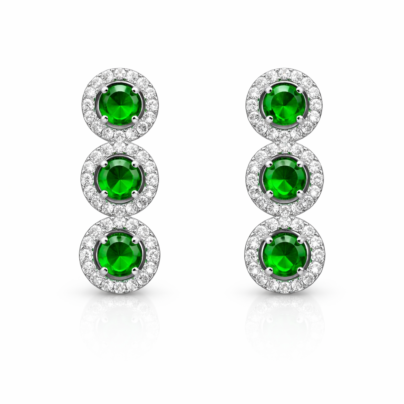 Brass Green Diamond Tiered Hoops