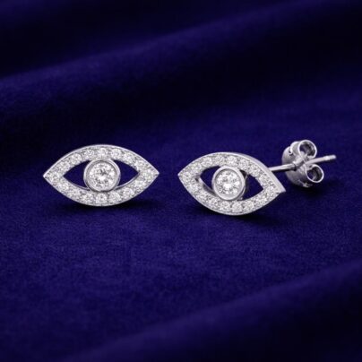 Silver Zircon Evil Eye Stud Earrings