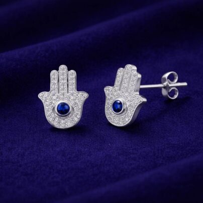 Silver Evil Eye Hamsa Blessings Earrings